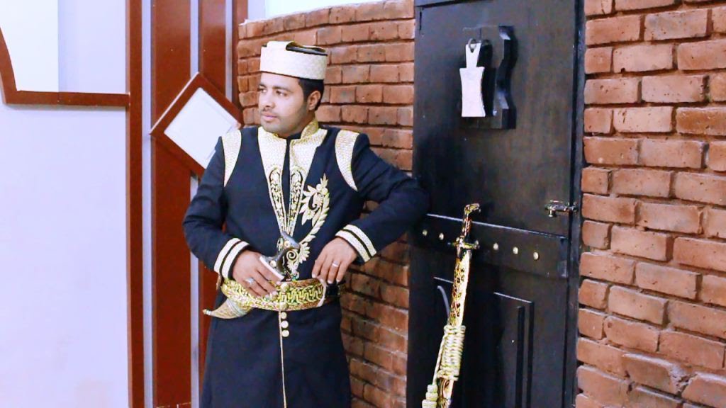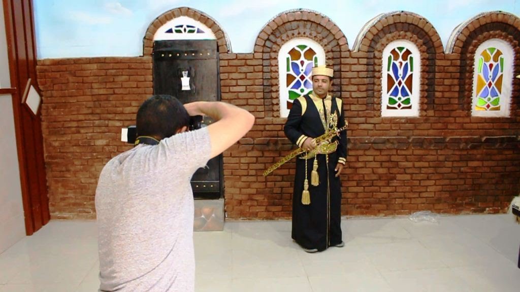 مستخدمًا خبرة سنوات في مساعدة المقبلين على الزواج في الظهور بشكل لائق وهم يرتدون الملابس التراثية اليمنية القديمة، في الصور التي يتم التقاطها لتكون واجهة دعوات الزفاف أو في جدران منازلهم.