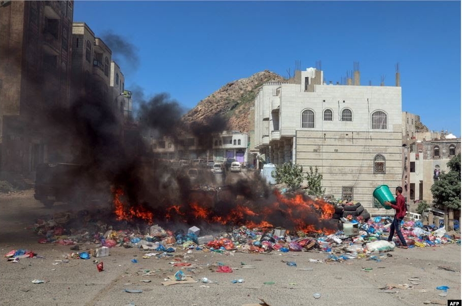تمتلئ شوارع مدينة تعز التاريخية في اليمن بأكوام من القمامة التي تفوح منها رائحة كريهة، وأصبحت المدينة أرضية خصبة لنمو البعوض وتفشي الأوبئة مثل الكوليرا.