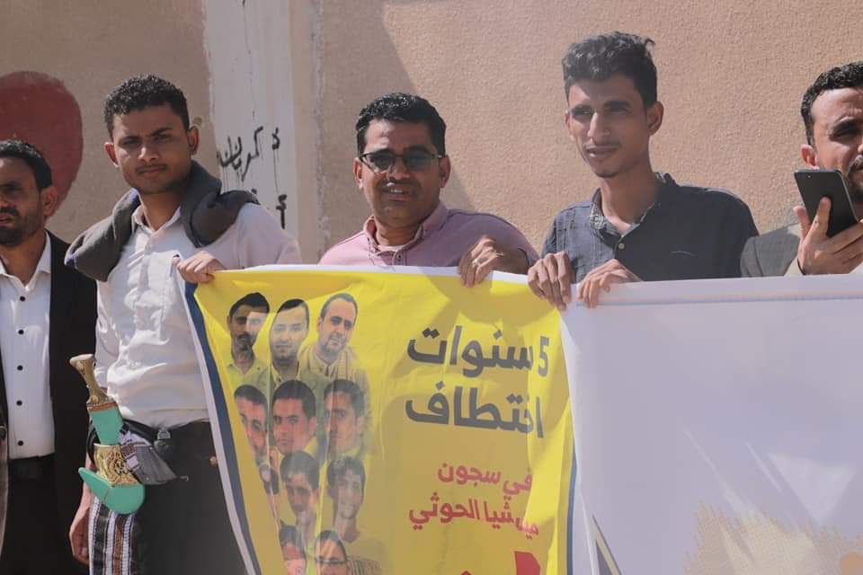 مأرب : وقفة احتجاجية تندد بمحاكمة المليشيات للصحفيين المختطفين في سجونها