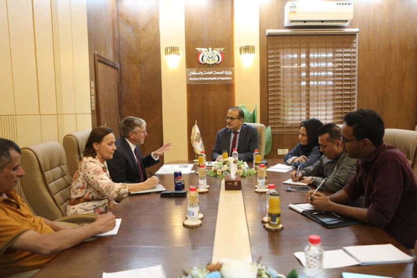 بحث وزير الصحة العامة والسكان الدكتور قاسم محمد بحيبح بالعاصمة المؤقتة عدن اليوم مع مسؤول ملف اليمن بوزارة التعاون والتنمية الدولية الألمانية فرنارد وورم سبل تعزيز التعاون المشترك في المجالات الصحية.