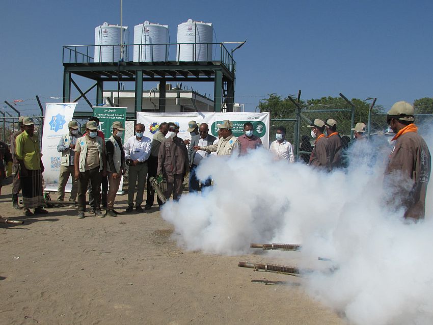 دشنت مؤسسة طيبة للتنمية، بمديرية الخوخة محافظة الحديدة، اليوم، حملة مكافحة البعوض الناقل للملاريا والحميات الفيروسية، بدعم من مركز الملك سلمان للاغاثة والاعمال الانسانية، ضمن مشروع الامداد المائي والاصحاح البيئي.