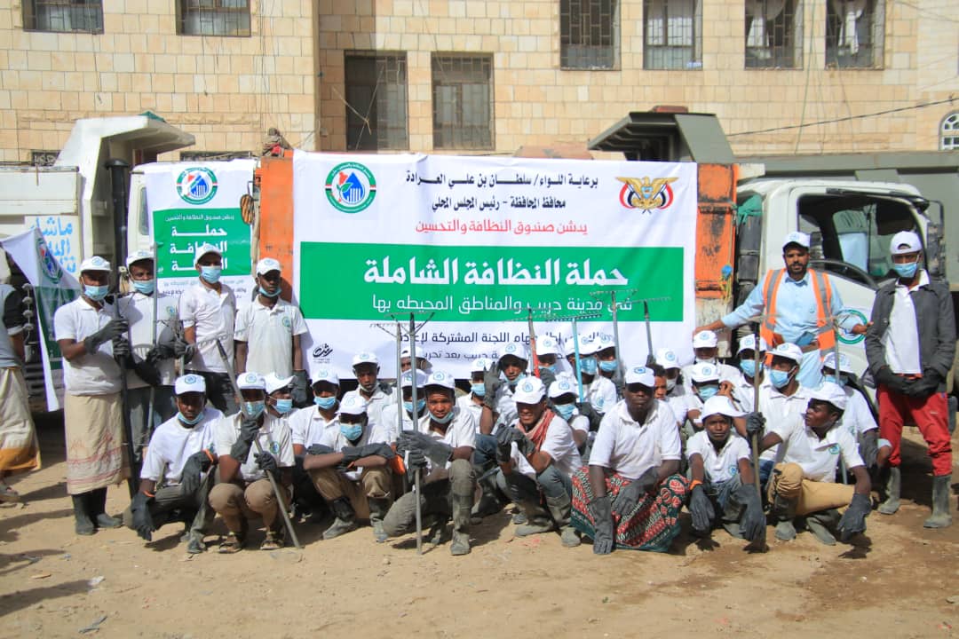بالصور : تدشين حملة نظافة شاملة في مدينة حريب بمأرب بعد تحريرها من المليشيات